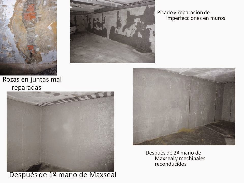 • Revestimiento en paramentos con dos manos de Maxseal mortero impermeabilizante a contrapresión con aditivos Maxcryl.